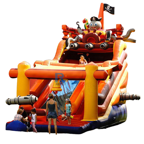 บ้านเด้งปราสาทโจรสลัดเป่าลมสำหรับเด็กทำจาก PVC พร้อมฐานกระโดดแบบสไลด์และดีไซน์เรือ