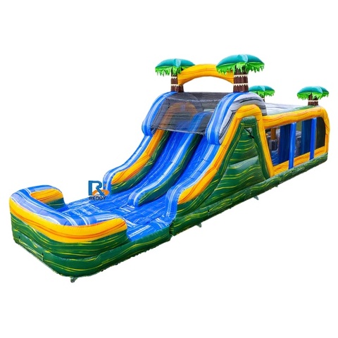 Parcours d'obstacles gonflable expansif avec toboggan aquatique et maison de rebond combinée