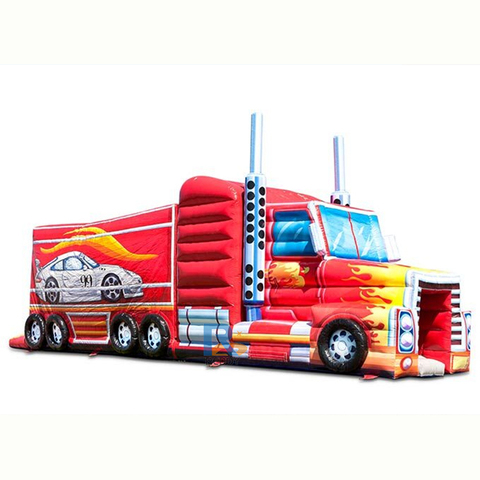 Château gonflable de camion de pompiers en PVC de vente chaude avec parcours d'obstacles interne pour la maison de videur et le divertissement de fête