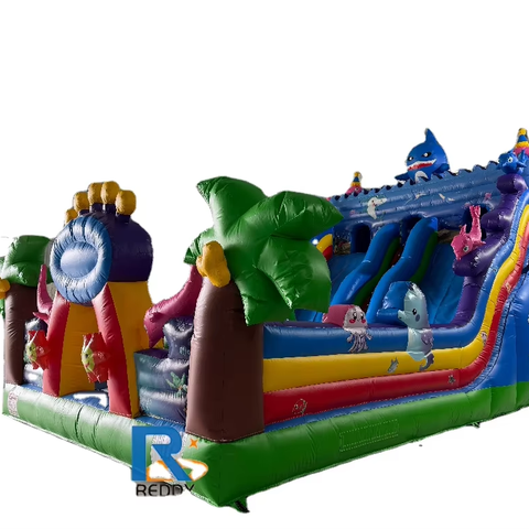 Toboggan sec humide gonflable coloré de maison de rebond de bâche de PVC du style animal marin Offre Spéciale 0.55mm pour l'événement d'enfants
